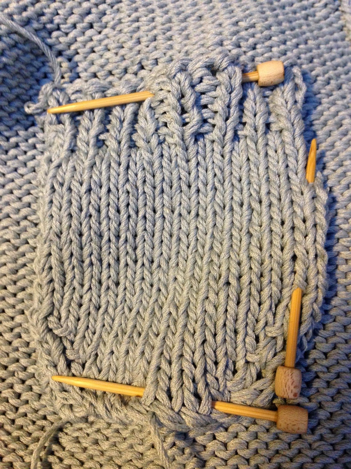 En door de week aan de tweede mouw van vest Sorrento gebreid. Nu nog de kraag en de zakken. Deze laatste worden los gebreid en erop gezet.